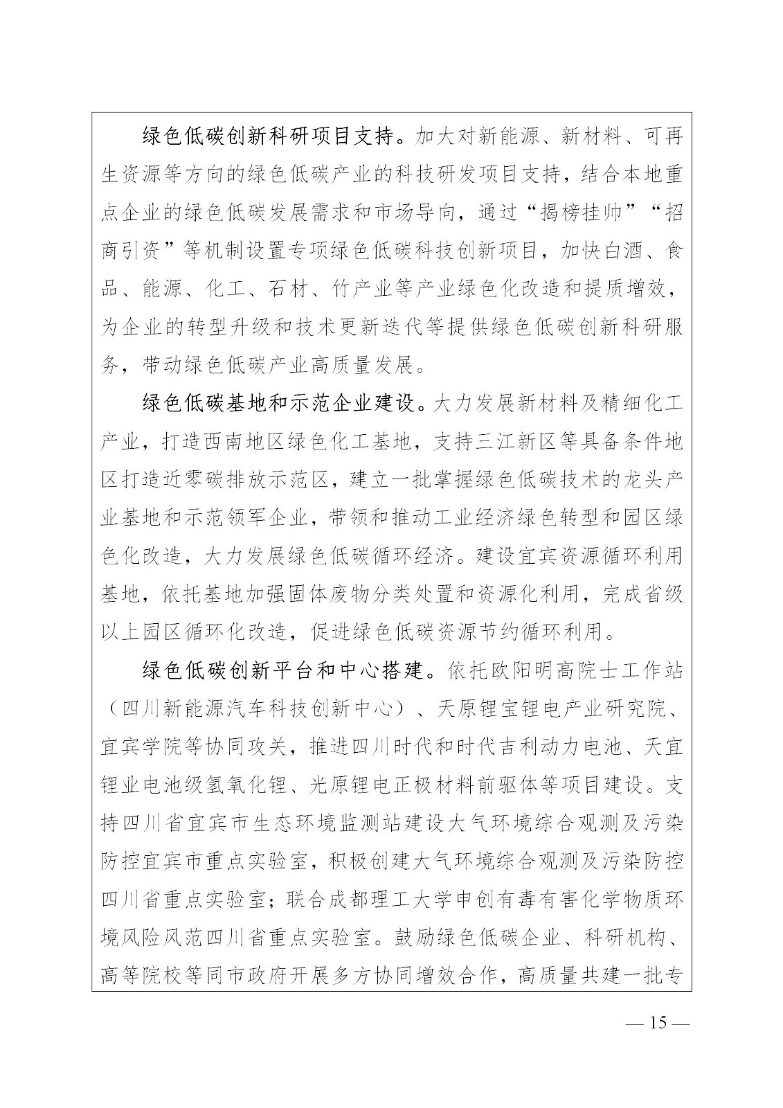 内容提到,持续推进能源绿色开发,加快清洁能源的开发和利用,强化数字化技术在能源开采、运输、管理等方面的应用。因地制宜,发挥宜宾地方能源和产业优势,围绕智能与绿色矿山建设、清洁能源开发和利用、智能电网与能源综合利用、储能等领域开展关键技术攻关,适时开展应用示范推广。构建绿色安全可靠的能源体系,科技支撑宜宾能源绿色转型。