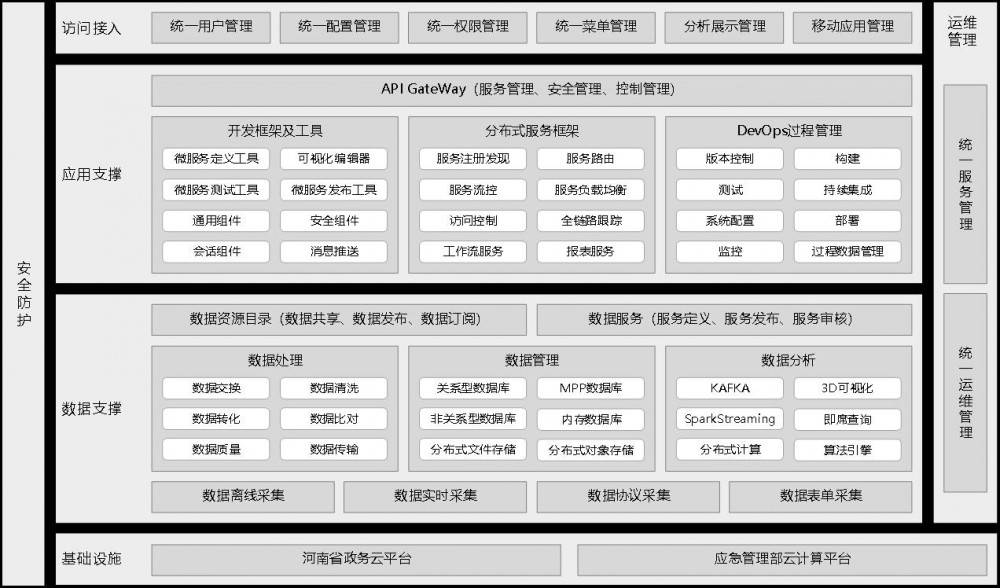 通过应用支撑系统升级和信息安全体系建设,做好现有业务系统的快速集成与各转隶单位系统的对接,实现一体化的安全生产智能化监管平台的搭建。